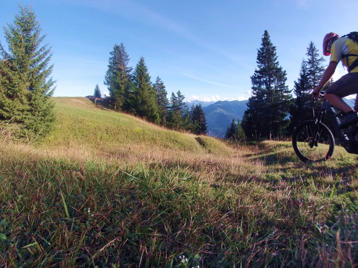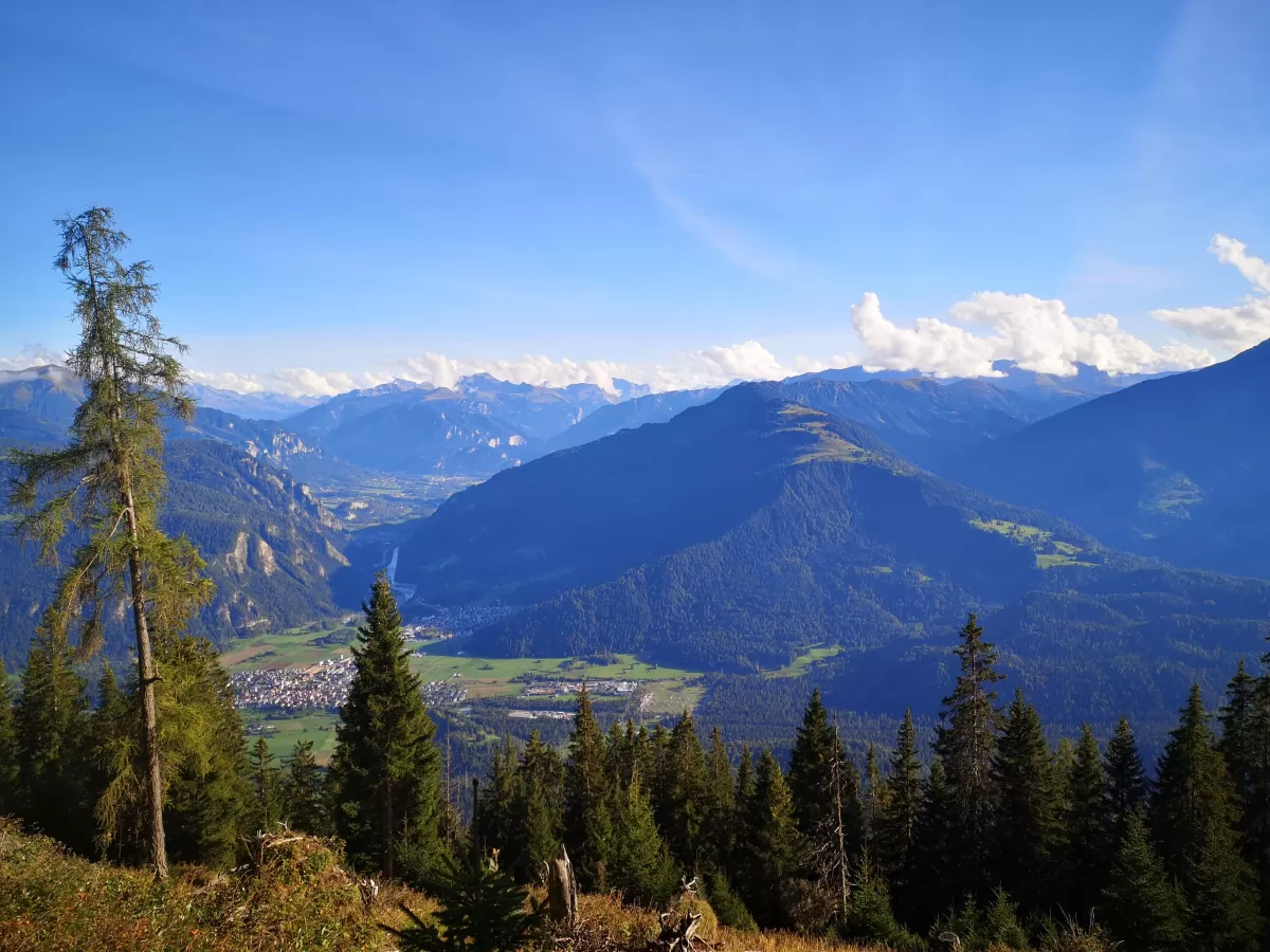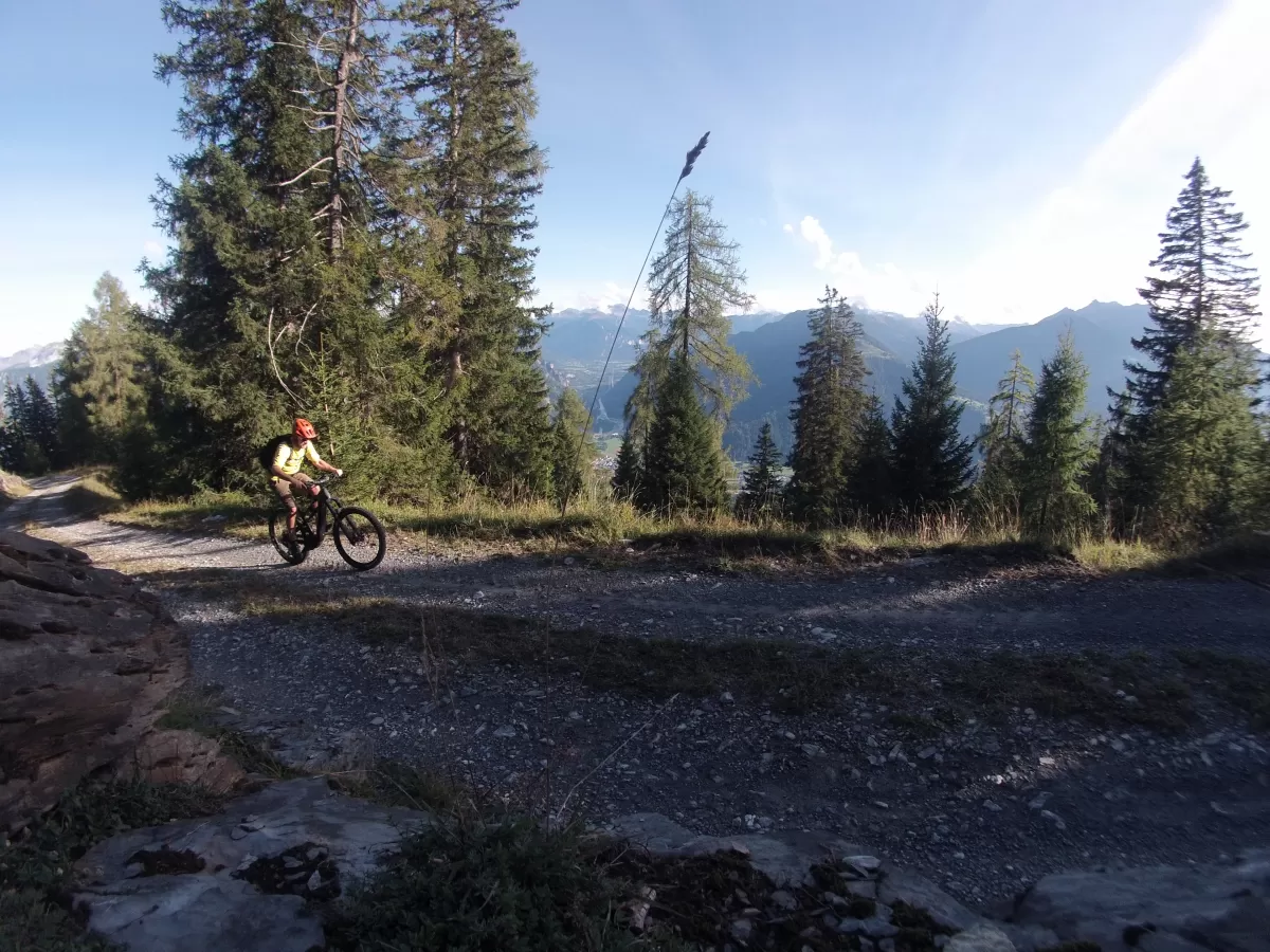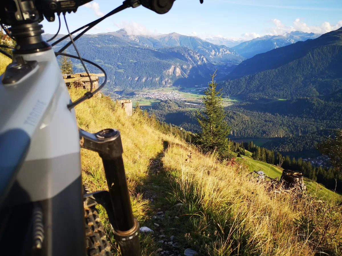 Eine wunderbare Mountainbike Tour oberhalb von Trin mit ordentlich Singletrail-Anteil und phänomenaler Aussicht.