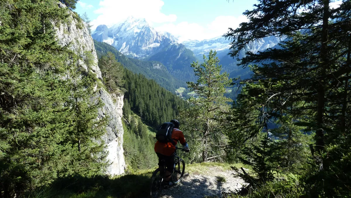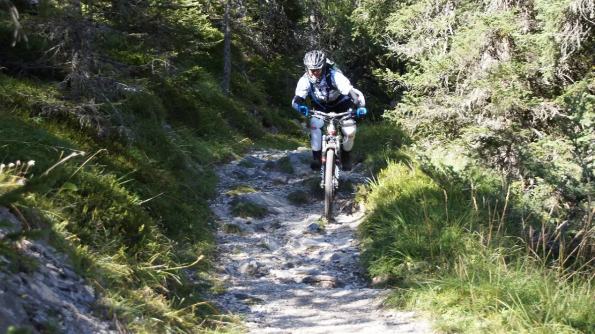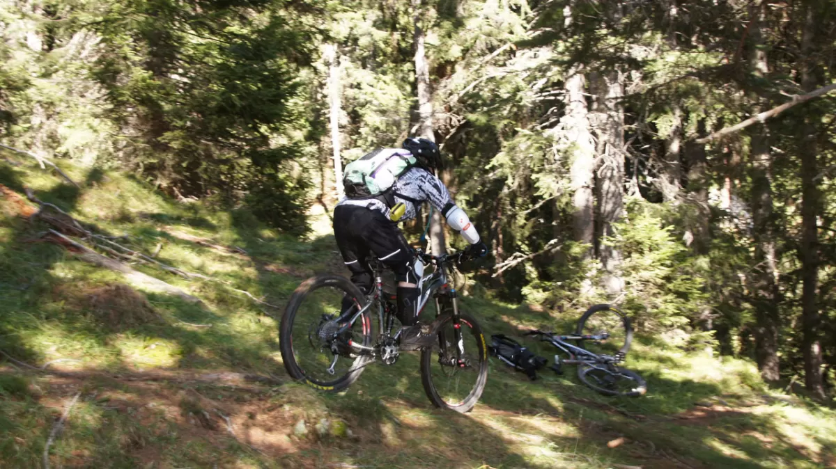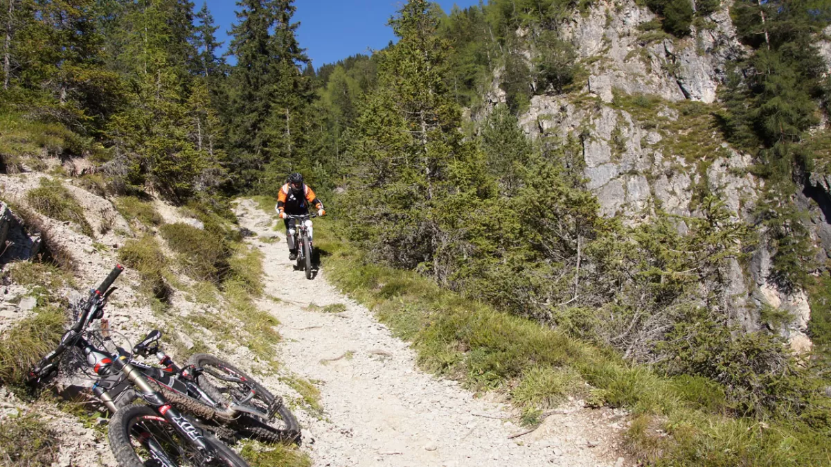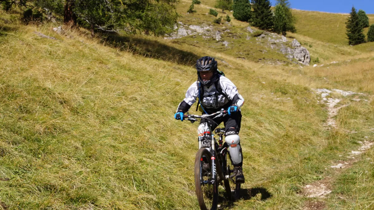 Freeridespass am Col Rodella, dem Gleitschirmflieger-Mekka im Val di Fassa, ist garantiert auch für Mountainbiker/Freerider Trailspass pu