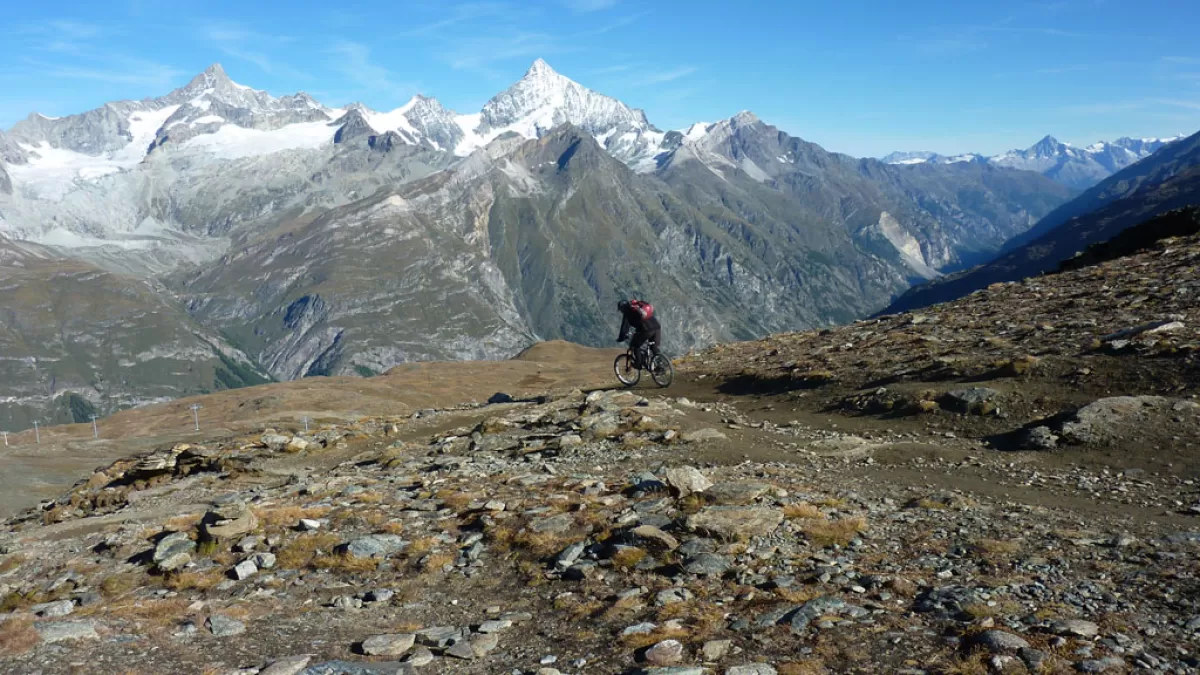Zermatt, Schokoladen-Klischee und Touristen aus aller Welt. Was will man dort überhaupt als Mountainbiker? Wer es bereits aus Bikersicht entdeckt hat, der weiss was gemeint ist: Gigantische Berg- und Gletscherkulisse mit ebenso gigantischen Trails von flowig bis verblockt. Mit der Gornergrat-Bahn bis auf 3089 m.ü.M. mühelos die Höhenmeter erklimmen. Es erwartet dich Genuss pur!