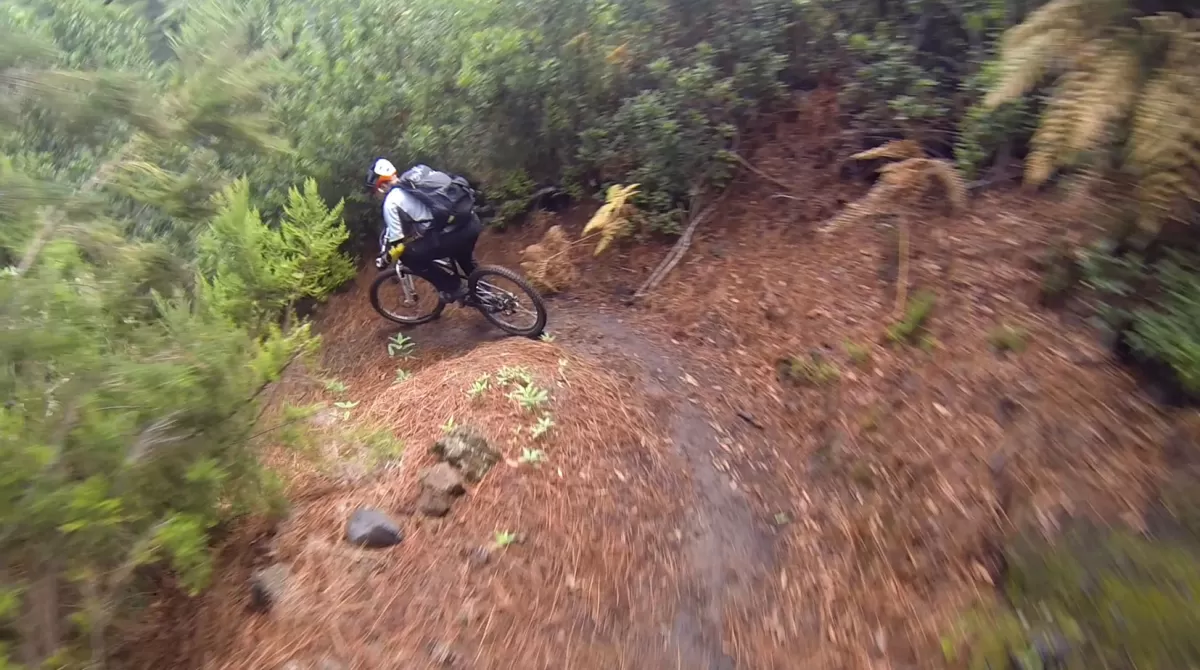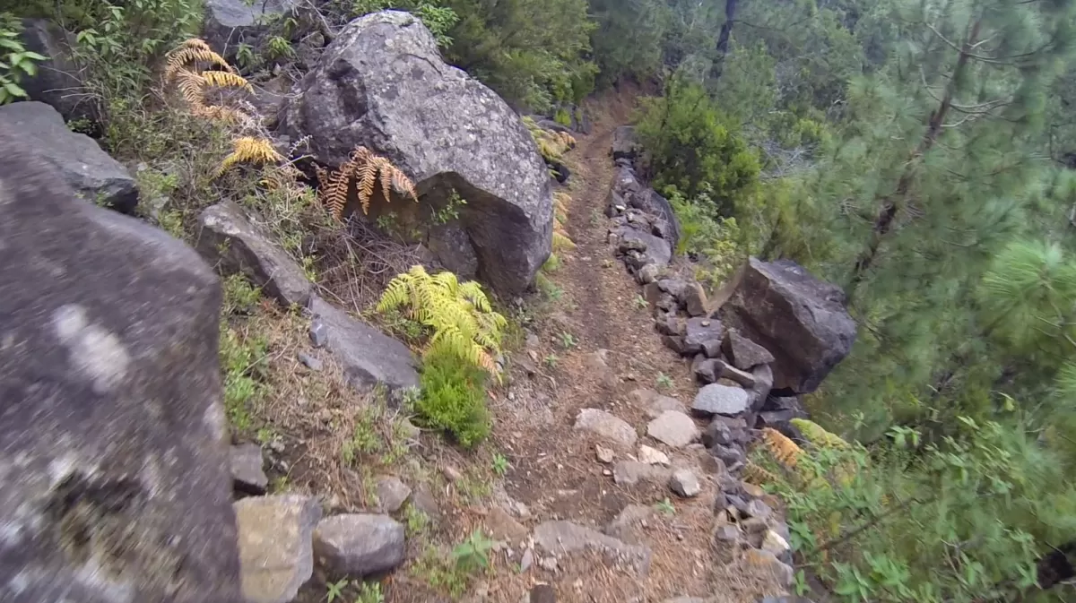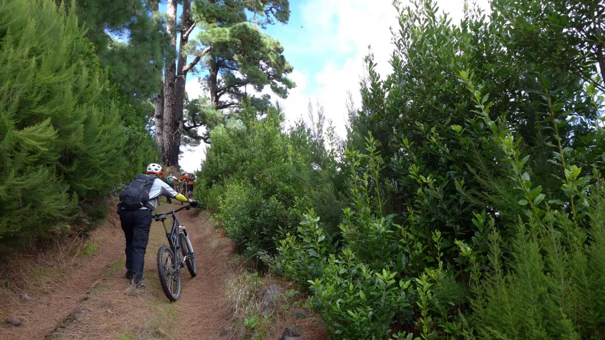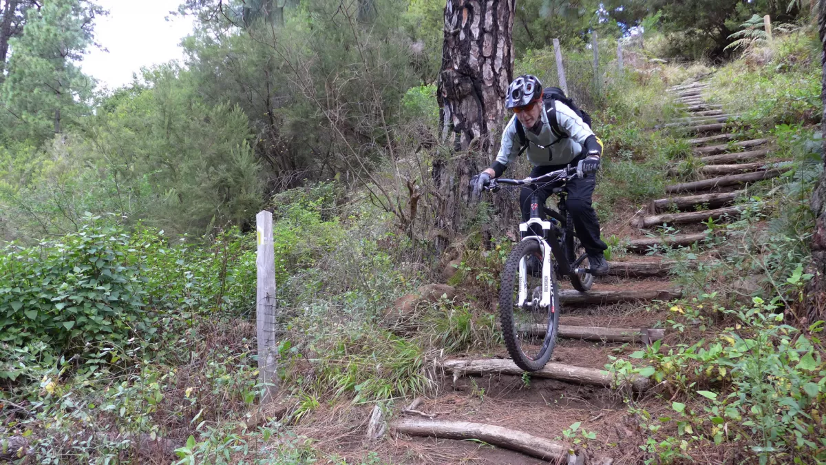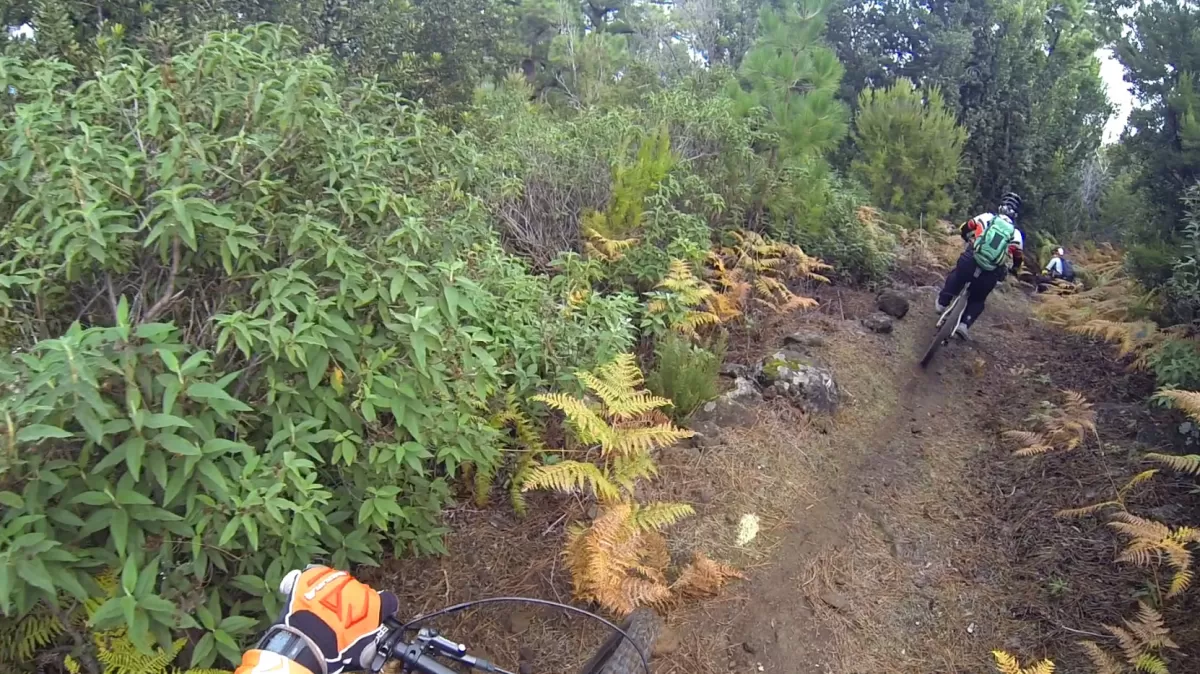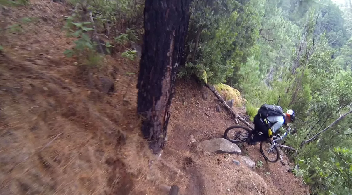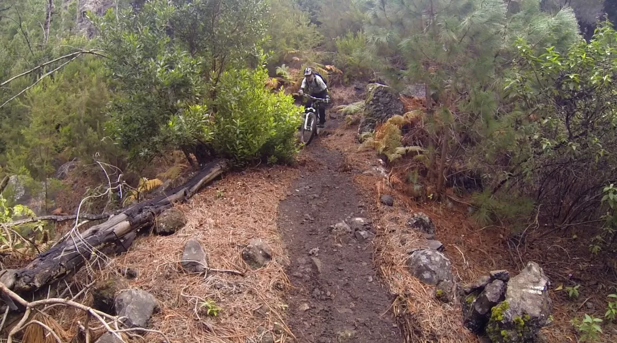 Mit dem Shuttle gehts hoch zum Mirador de los Andenes. Den Panoramablick in den Krater Caldera de Taburiente sollte man sich nicht entgehen lassen. Ein anspruchsvoller, ruppiger Downhill im oberen Teil und ein fänomenaler, flowigen zweiten Teil bis nach Roque Faro. Weiter via La Mata nach Santo Domingo de Garafie im Norden von La Palma.