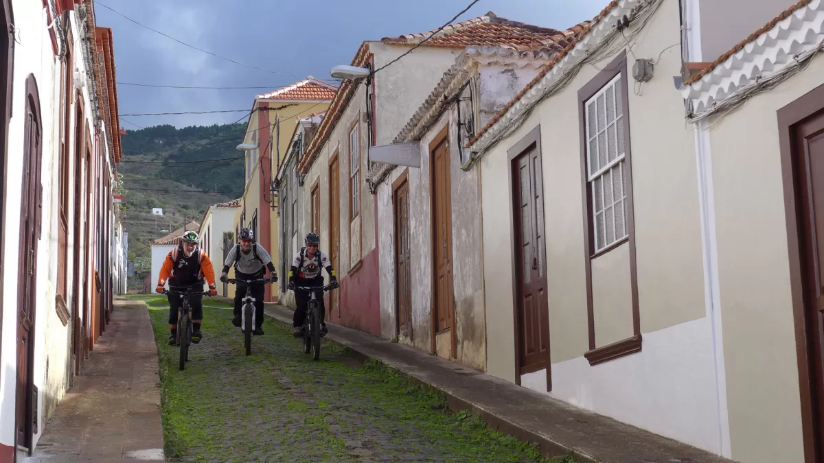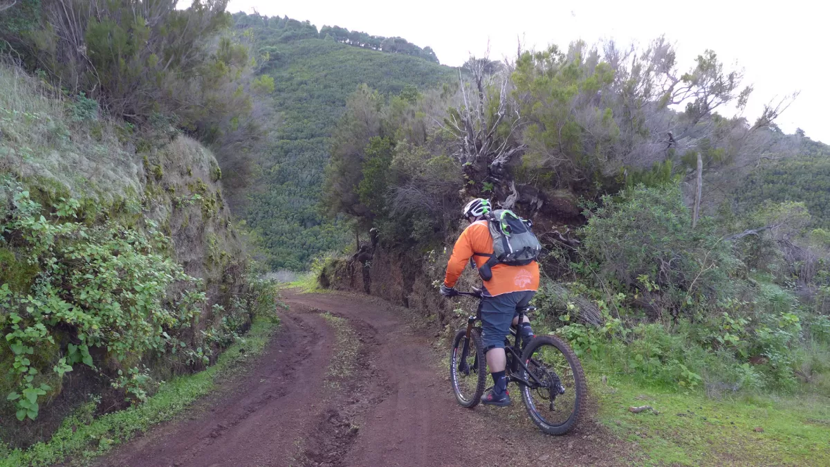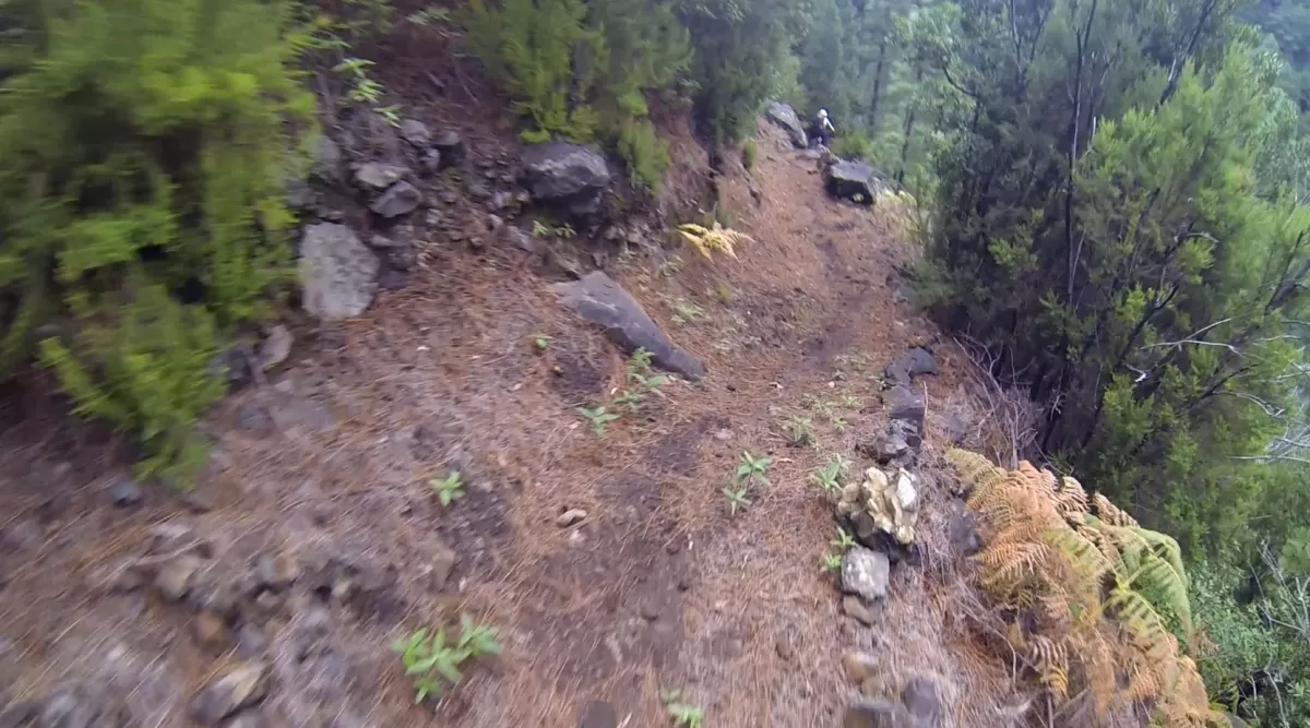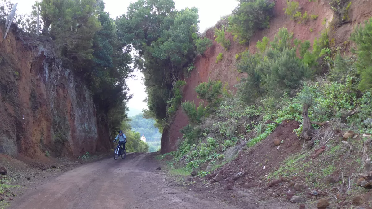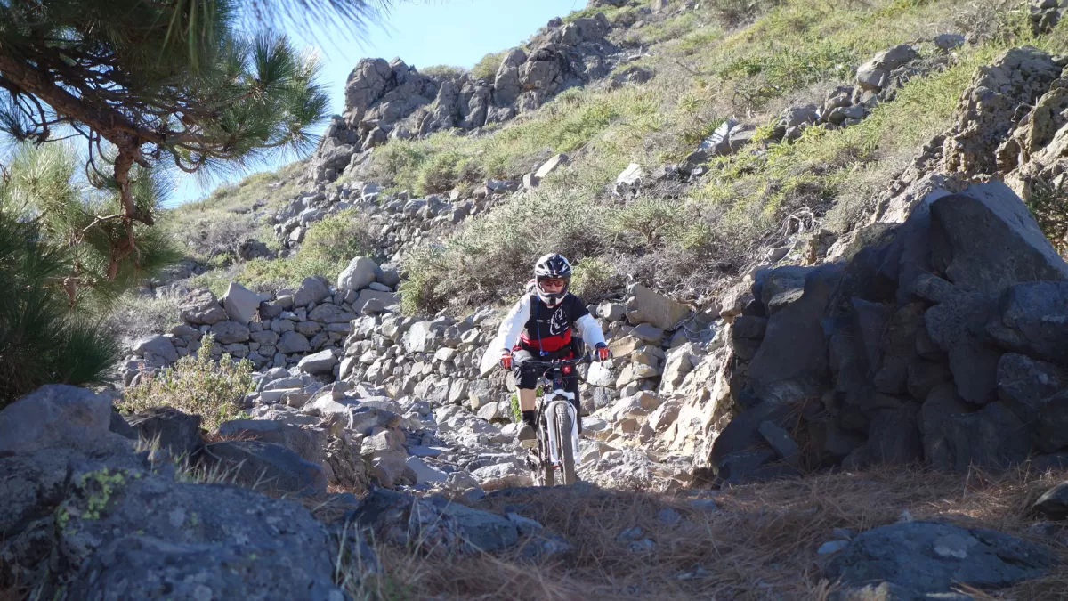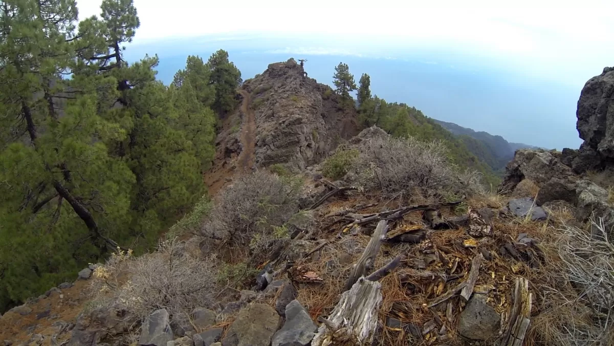 Mit dem Shuttle gehts hoch zum Mirador de los Andenes. Den Panoramablick in den Krater Caldera de Taburiente sollte man sich nicht entgehen lassen. Ein anspruchsvoller, ruppiger Downhill im oberen Teil und ein fänomenaler, flowigen zweiten Teil bis nach Roque Faro. Weiter via La Mata nach Santo Domingo de Garafie im Norden von La Palma.