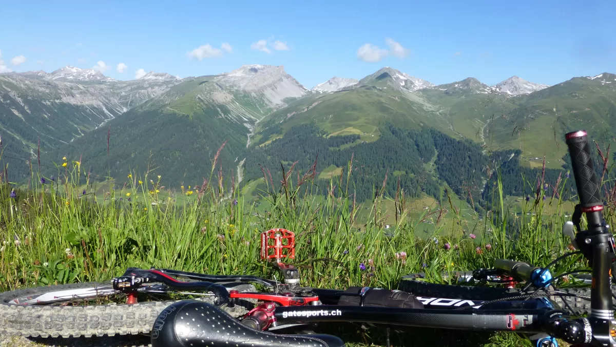 Ein sensationell schöner Singletrail führt vom Rinerhorn nach Sertig-Dörfli. Und das Bergpanorama darf sich auch sehen lassen. Schöne Bündner Bergwelt eben. Ein Grund mehr, diese Tour etwas detaillierter darzustellen, als in den bisherigen offiziellen Tourismusbroschüren.